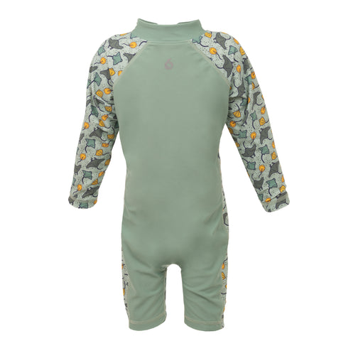 Frolic, play, and keep the sun at bay! The Marlin sun suit ensures your little one is the best-protected child from the sun on the beach. It is constructed with a soft recycled nylon material that is quick-dry, so they will be comfortable all day going in and out of the water. The Marlin has a sun protection factor of UPF 50+. Designed with a front side-winder zipper, the Marlin was made so your little one can crawl, play, and roll around without a zipper chafing their sensitive skin. This long front zipper also makes for easy diaper changes. It’s a perfect option for anyone looking to spend all day on a sunny day on the lake or hanging out at the beach with their tiny tot!