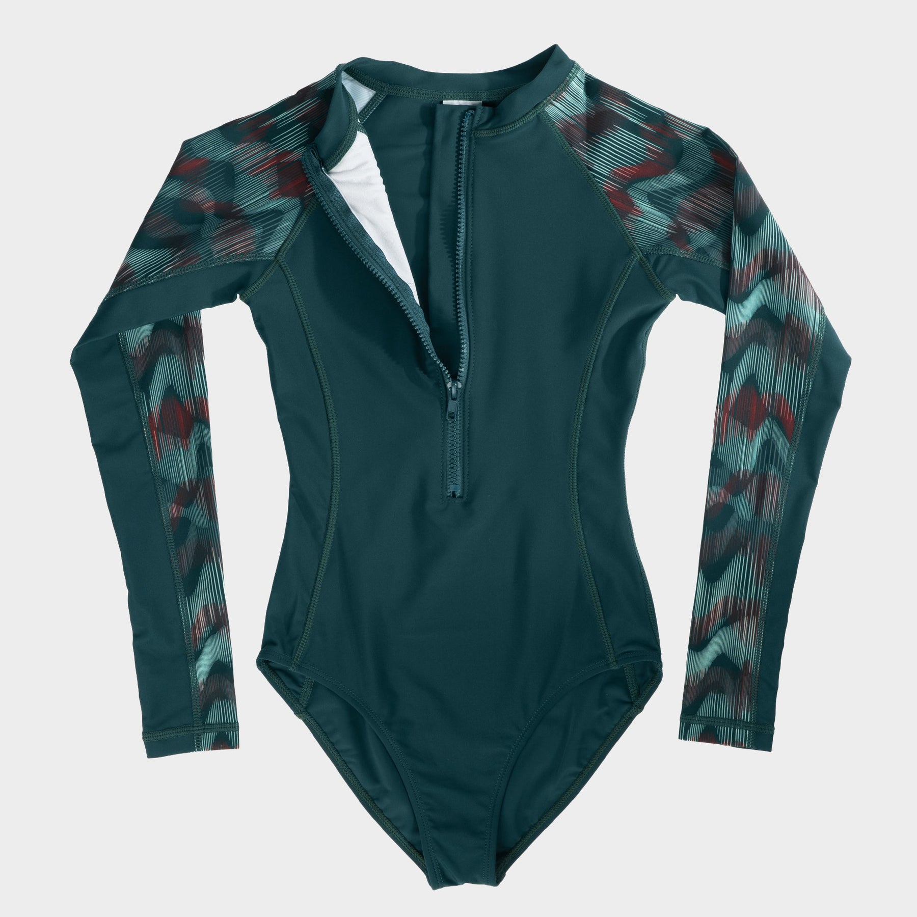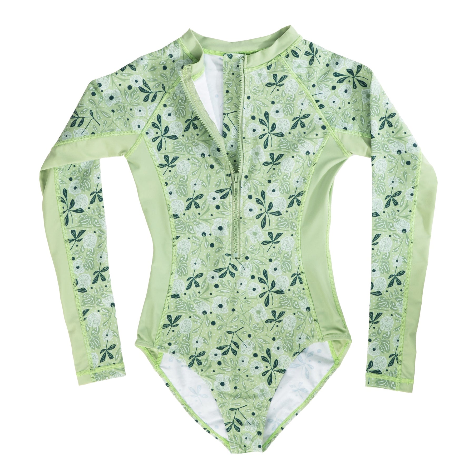 The Daphne is a one-piece swimsuit designed for sun protection during long days on the beach. It features a front half-zip closure for easy dressing and flat-stitched seams for comfort. The Daphne is ideal for long days playing in the water or hanging on the beach.