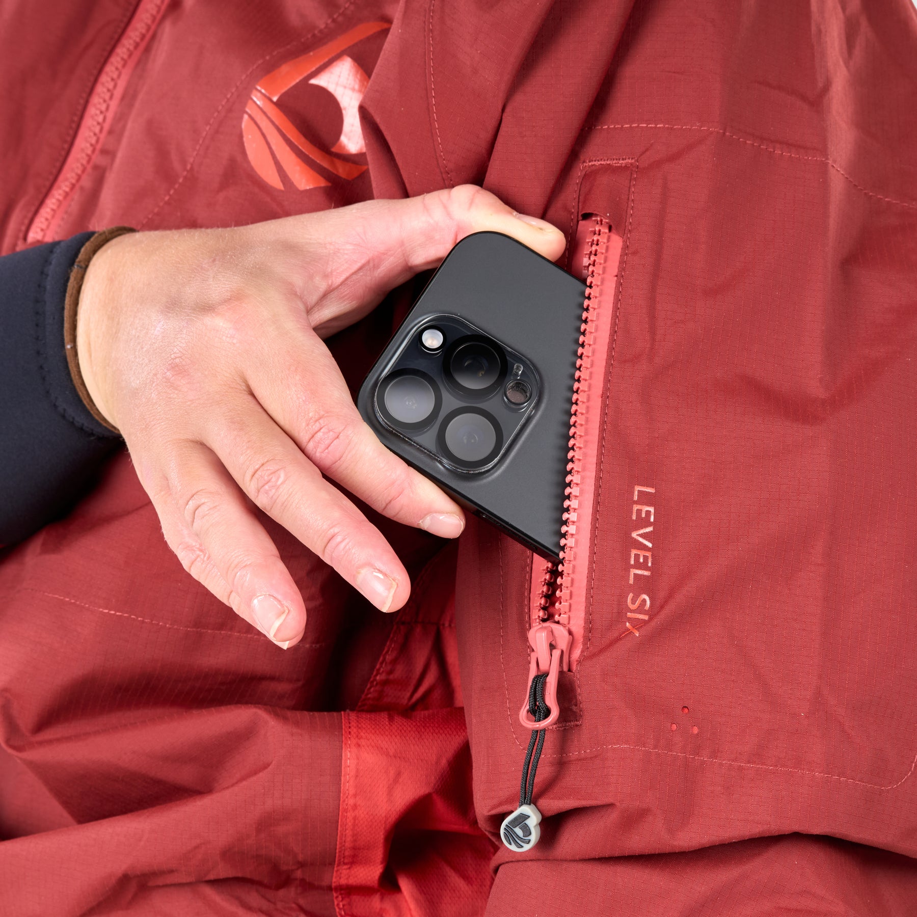The Haida is a women's full-features 3-season jacket constructed from our PFAS free Exhaust Lite material. Designed to be light and breathable while offering full protection. It features a sleeve pocket and can be rolled into itself for easy storing. With an adjustable neck closure, hood and punch through cuffs as well as a double tunnel that integrates with a kayaking spray skirt, the Haida boasts a weatherproof seal. This piece is perfect for expedition paddling or any situation that may require a weatherproof top.