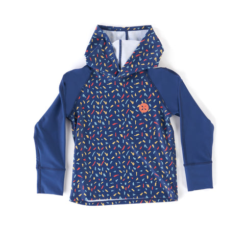 Le sweat à capuche Ariel Sun Protection est une couche légère qui protège votre tout-petit du soleil. Il est fabriqué avec un mélange de polyester/élasthanne hyper extensible qui sèche rapidement, ce qui le rend confortable à porter toute la journée dans et hors de l'eau. Conçu pour avoir une coupe décontractée, c'est la couche ultime pour les garder heureux lorsqu'ils jouent à la plage ou pagayent sur le lac par une chaude journée d'été. L'Ariel a un indice de protection solaire UPF 50+, il prolongera donc leur temps sur l'eau et les gardera à l'aise. Il a été conçu avec des manches raglan et une capuche pour une meilleure protection solaire.