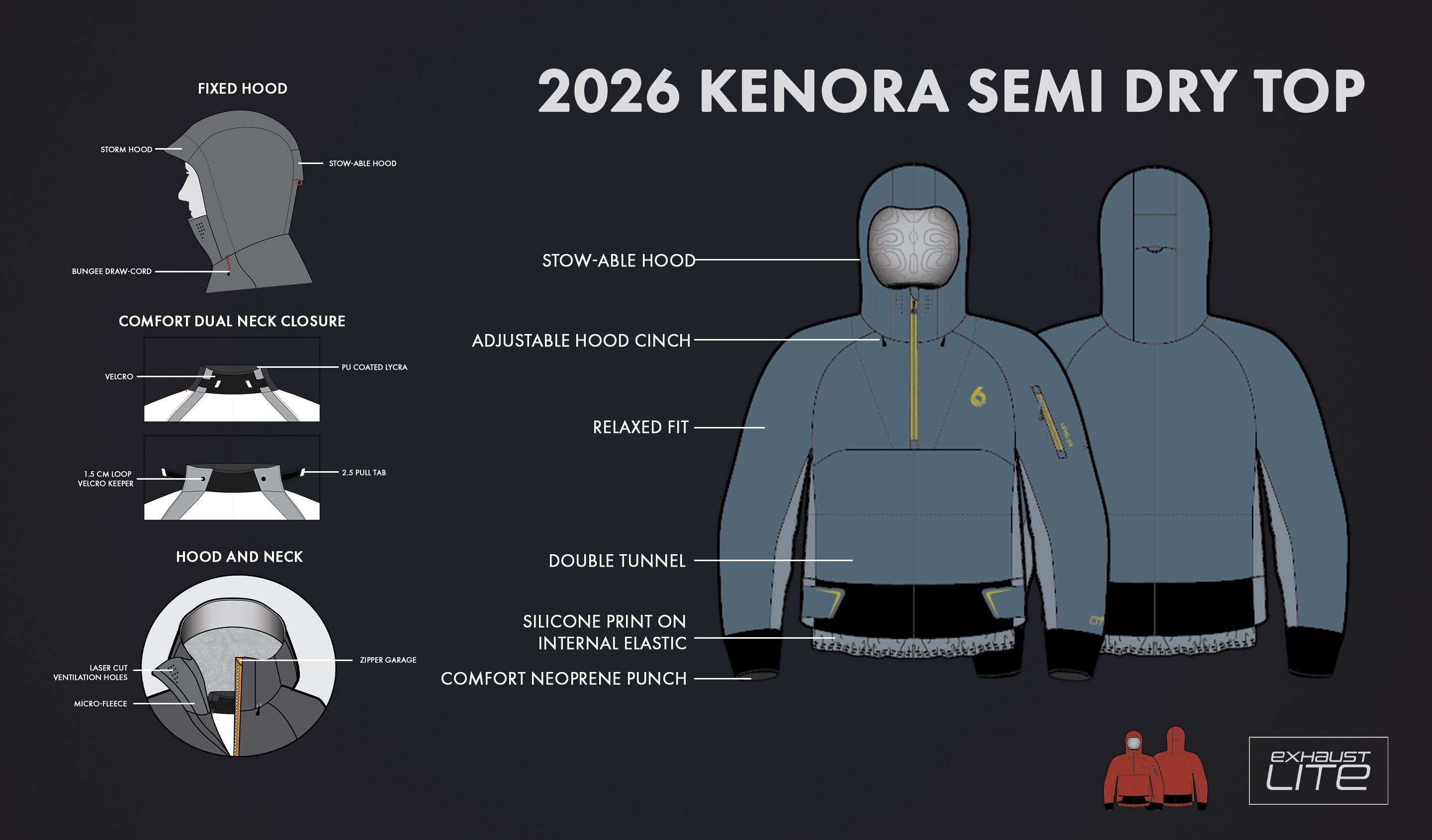 The newly designed products within the 2026 Semi-Dry Collection is built for paddlers who want lightweight comfort, dependable dryness, and sustainability without compromise. From the expedition-ready Haida and Kenora to the performance-focused Australis and Solstice, these tops bring the same paddler-driven design philosophy and Exhaust Lite fabric story to a range of fits and paddling styles. PFAS-free, 100% recycled, and engineered specifically for paddlesports, Exhaust Lite delivers the breathability, waterproofing, and packability today’s customers demand — all while answering the growing call for a true Gore-Tex alternative.